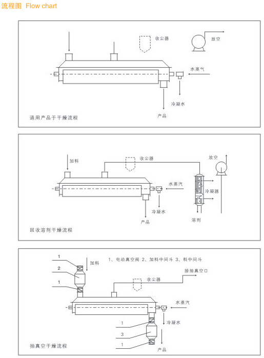 ● 处理物料范围广:使用不同热介质,既可处理热敏性物料,又可处理需高温处理的物料。常用介质有:水蒸汽、导热油、热水、冷却水等。既可连续操作也可间歇操作,可在很多领域应用。